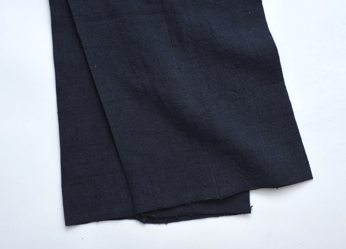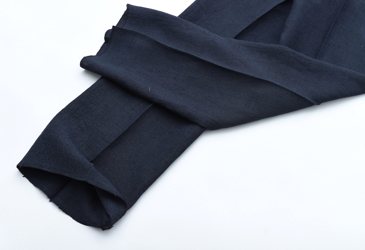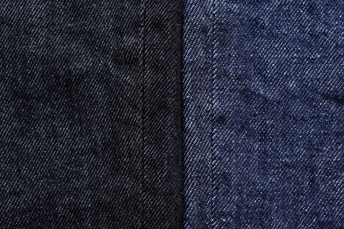 ピュアインディゴでロープ染色した糸(ブラックは硫化染した糸)をタテ糸に使い、