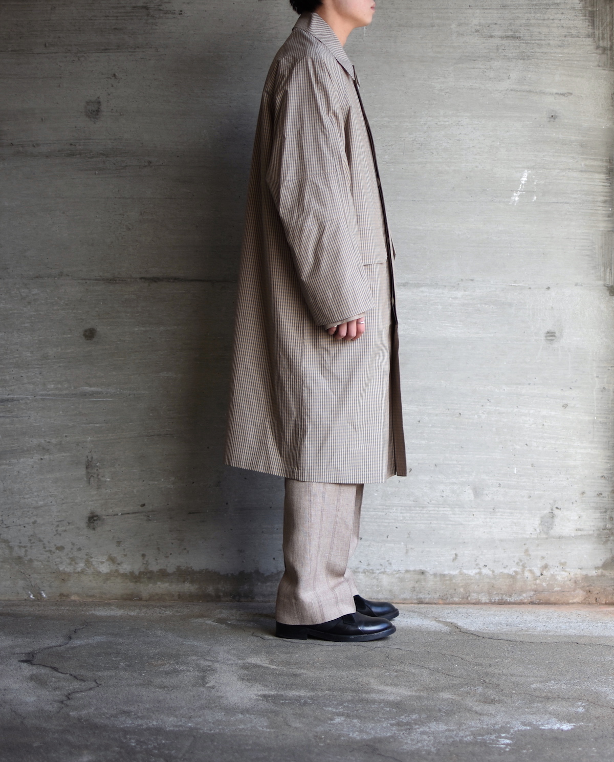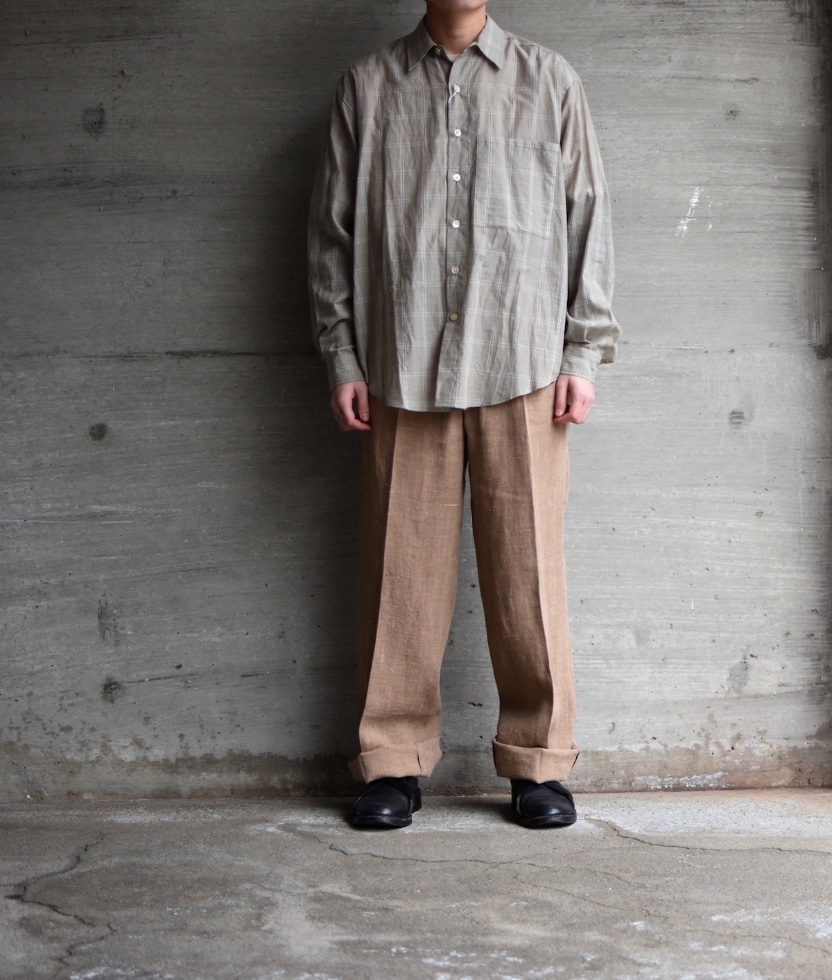 そして台衿と一体化した衿が特徴の「オーバーサイズチェックシャツ」