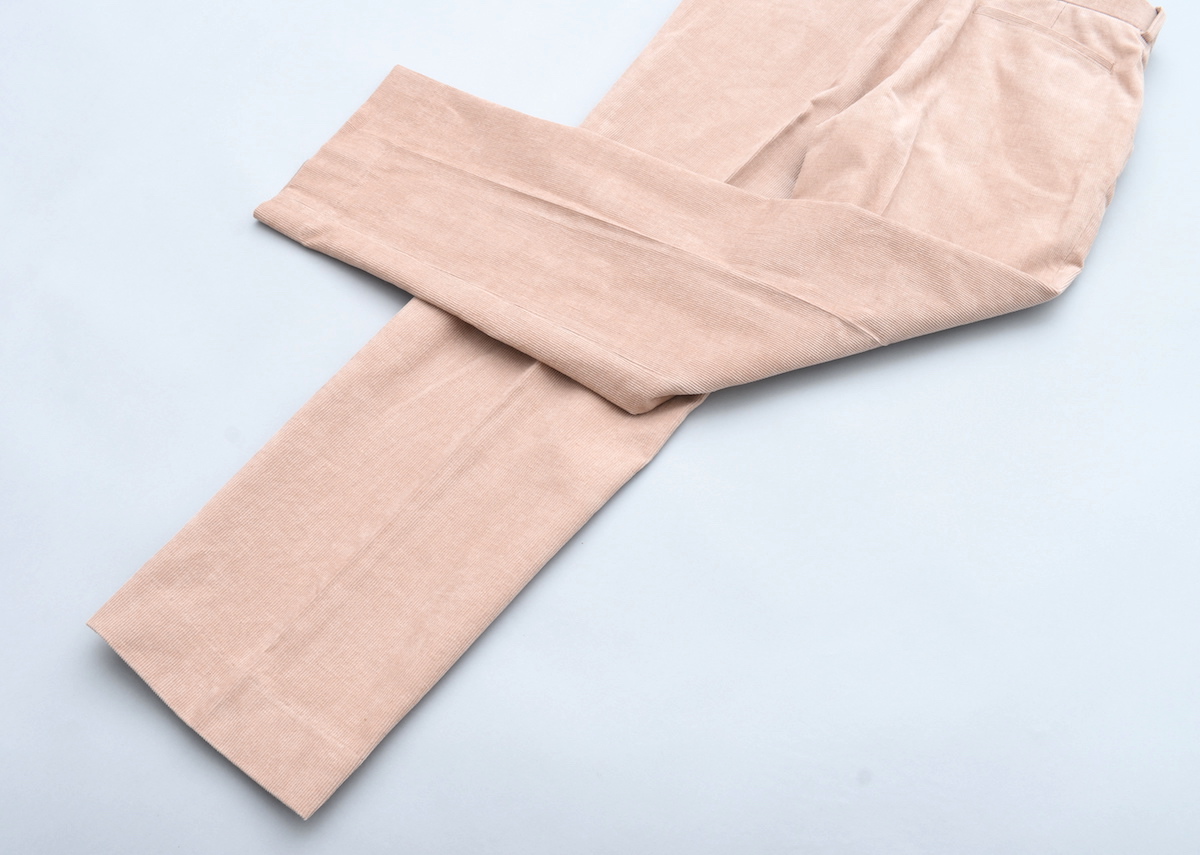 センタークリース入りのスラックスのようなシルエットで、