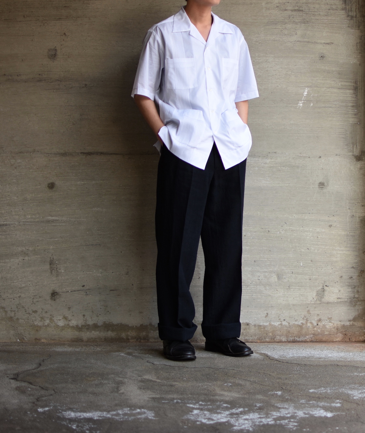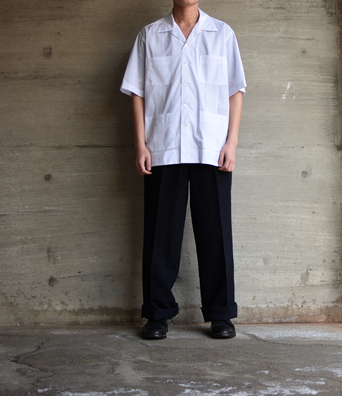前身頃に最低限のシンプルな刺繍を施した上品な「キューバシャツ」