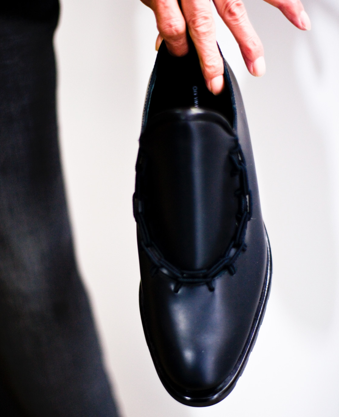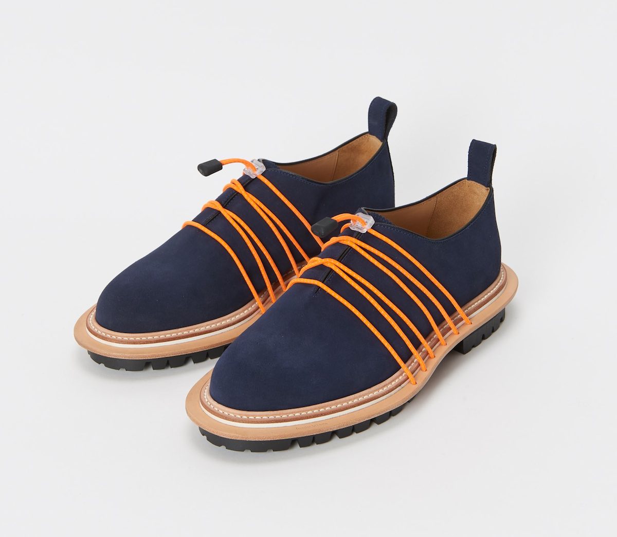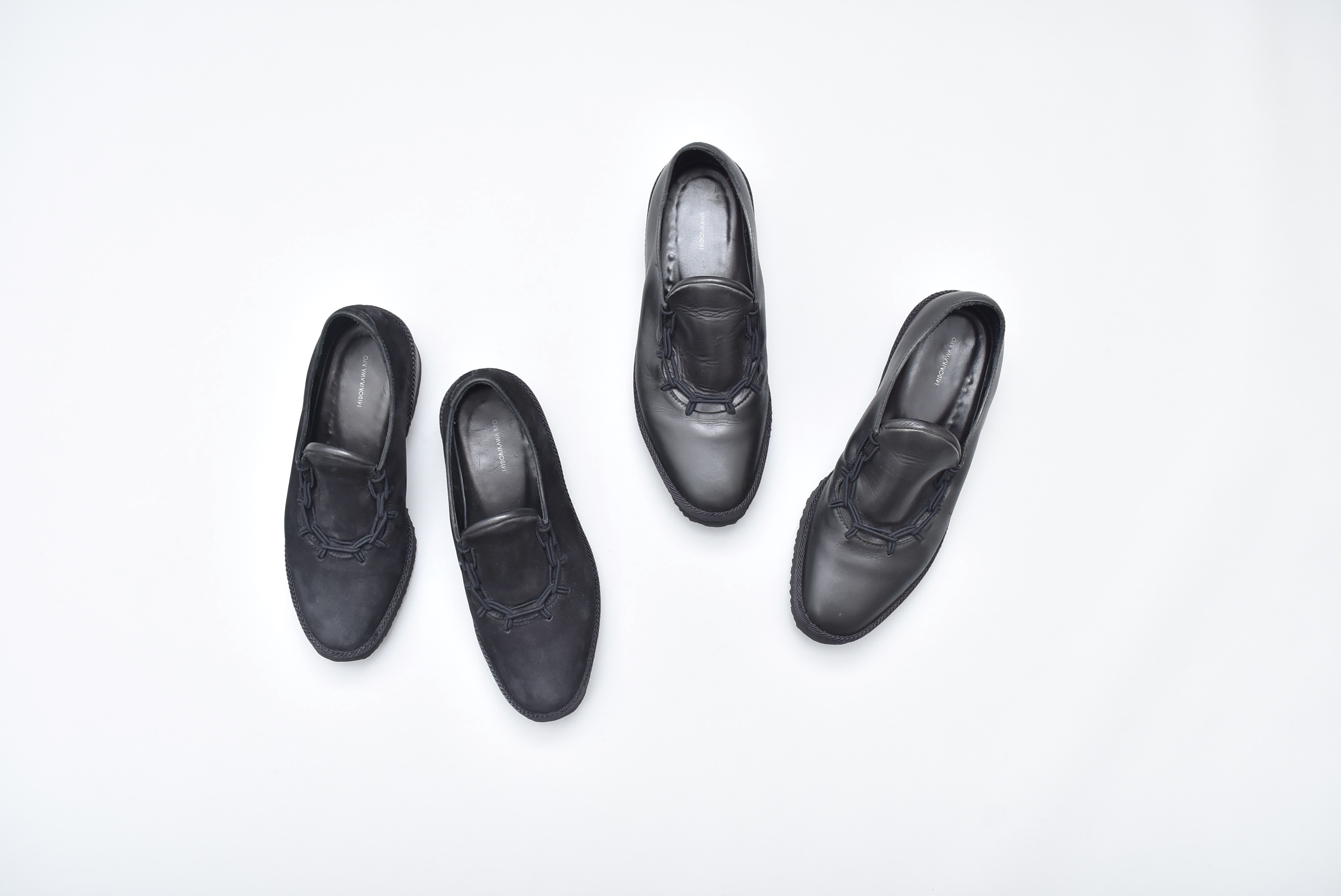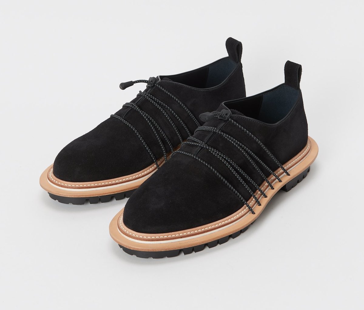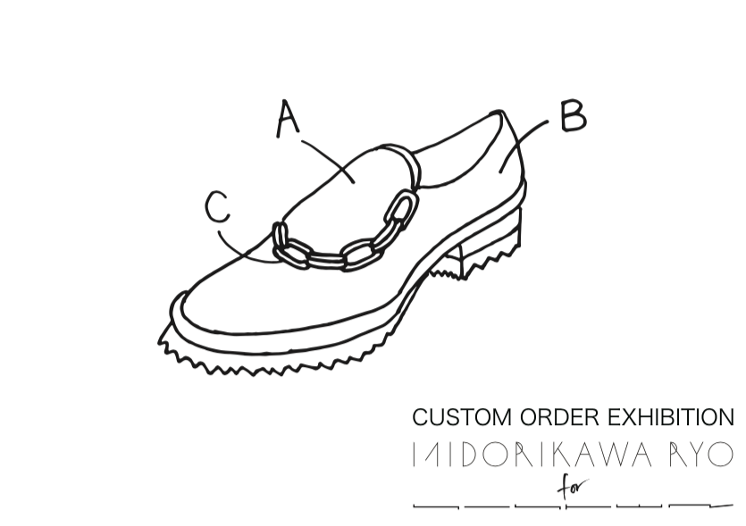 レザーシューズのデザインに重ね、