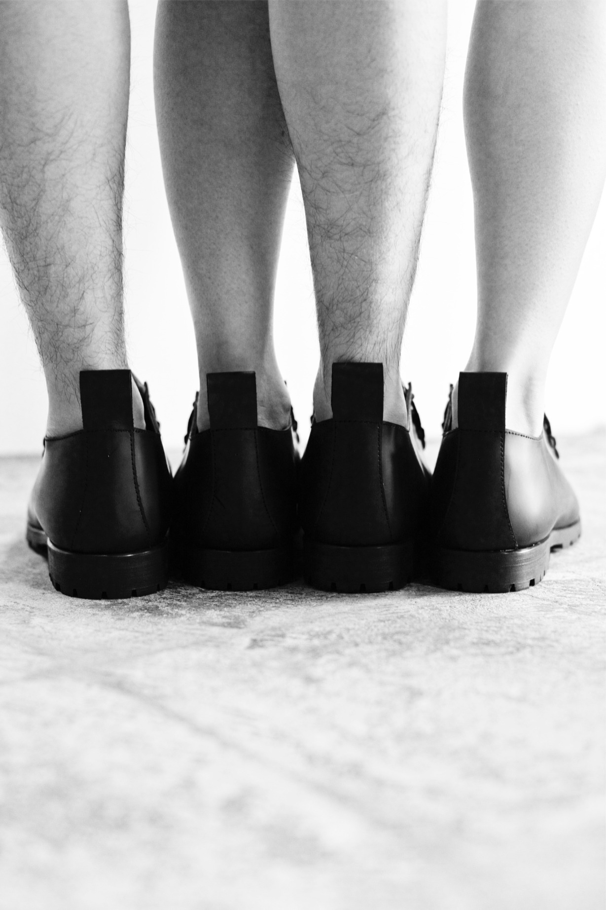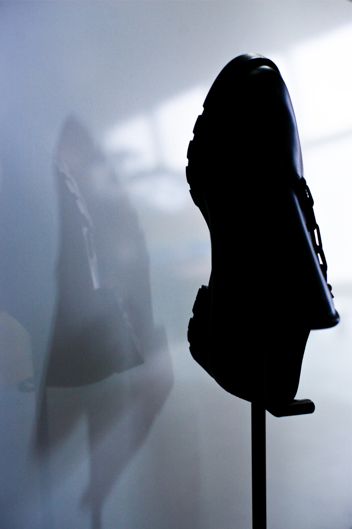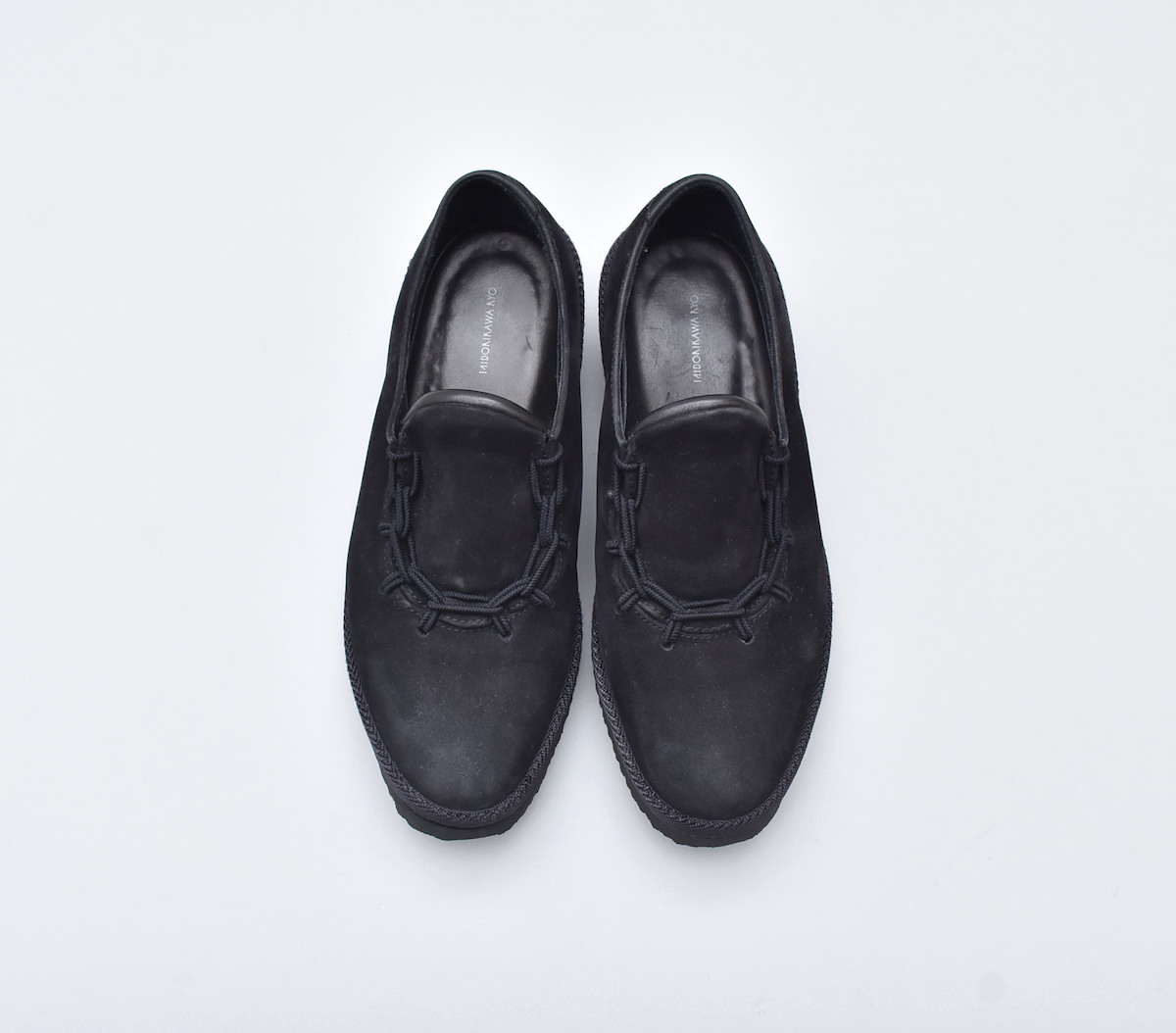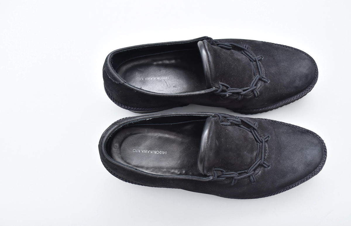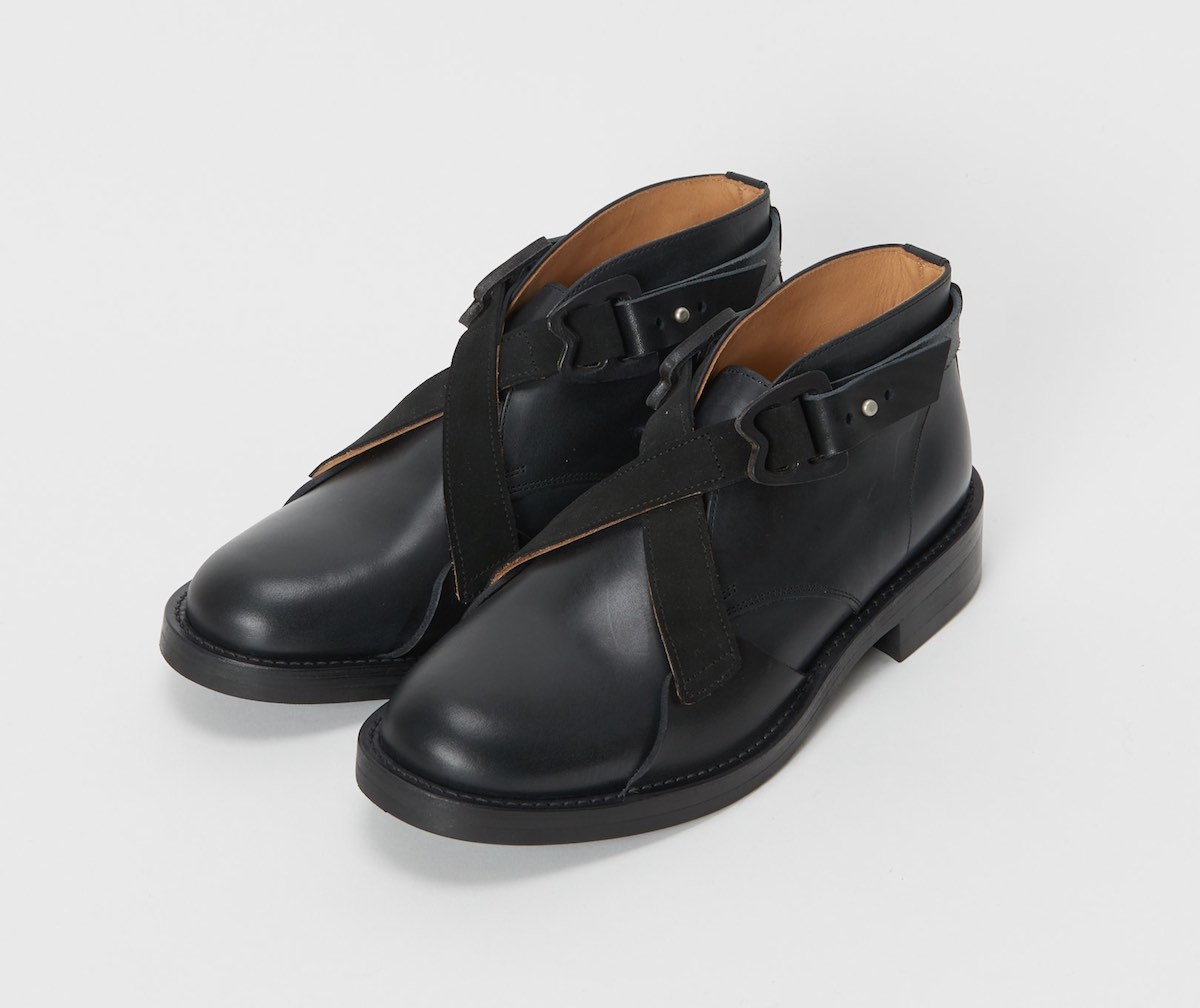 レザーシューズのデザインに重ね、